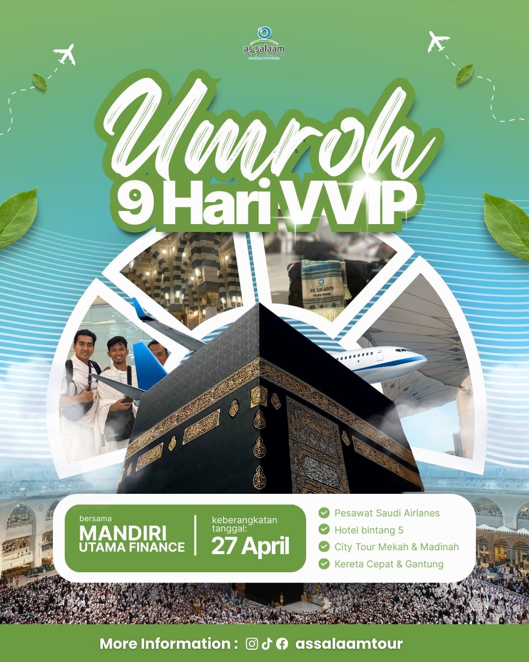 Perjalanan Umroh Eksklusif VVIP bersama Assalam Travel ini dirancang khusus untuk para karyawan, direksi, serta keluarga besar PT Mandiri Utama Finance. Dengan layanan istimewa dan kenyamanan premium, jamaah akan berangkat menggunakan maskapai Saudi Airlines yang dikenal dengan fasilitasnya yang nyaman dan profesional. Sejak awal perjalanan, Assalam Travel memastikan semua kebutuhan jamaah terlayani dengan baik, mulai dari pengurusan dokumen, bagasi, hingga pendampingan penuh selama ibadah.