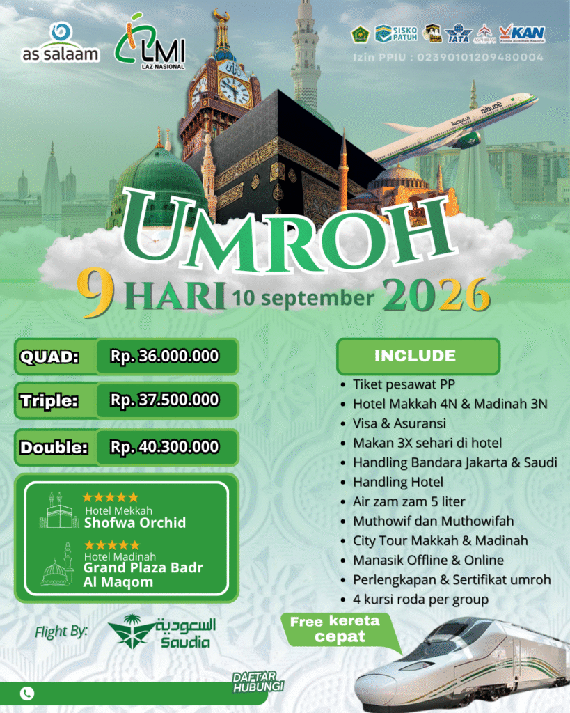 UMROH REGULER SEPTEMBER 2026 – PROGRAM 9 HARI
